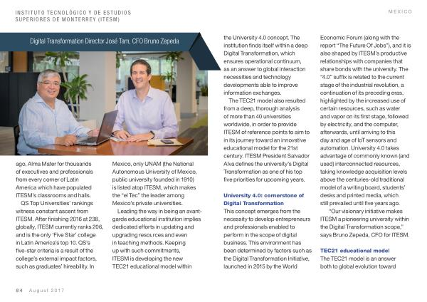 Leading the way in being an avantgarde educational institution implies dedicated efforts in updating and upgrading resources and even in teaching methods . Keeping up with such commitments , ITESM is developing the new TEC21 educational model within