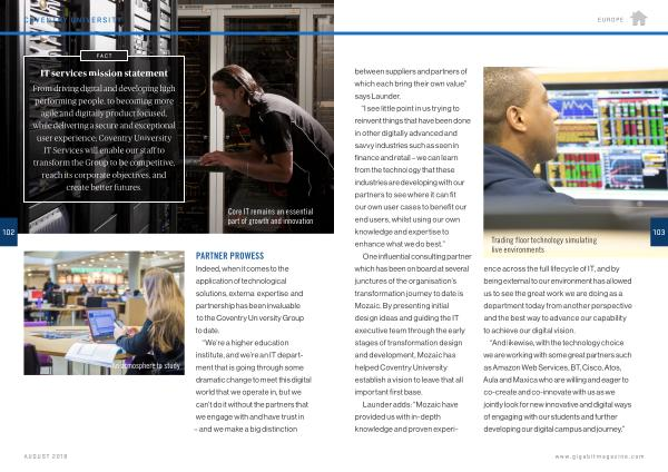 One influential consulting partner which has been on board at several junctures of the organisation ’ s transformation journey to date is Mozaic . By presenting initial design ideas and guiding the IT executive team through the early stages of transformation design and development , Mozaic has helped Coventry University establish a vision to leave that all important first base .