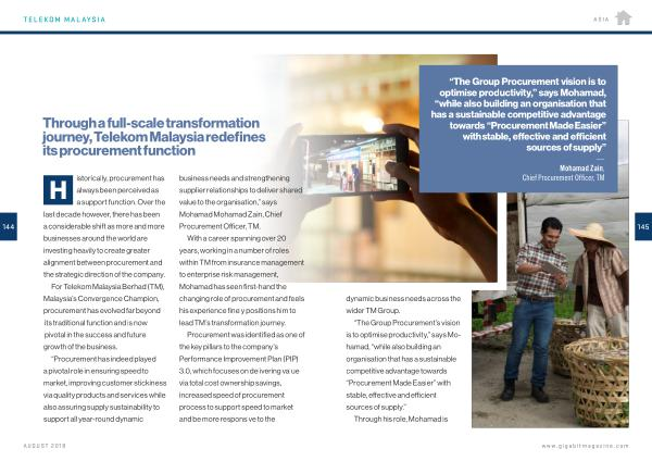 “ The Group Procurement vision is to optimise productivity ,” says Mohamad , “ while also building an organisation that has a sustainable competitive advantage towards “ Procurement Made Easier ” with stable , effective and efficient sources of supply ”