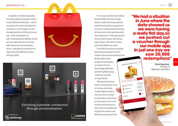 In addition , in what is arguably the most significant project rolled out by Nishal and his team – which has grown from Zero ( 0 ) when he arrived to a current figure of one hundred and forty ( 140 ) and counting – is the introduction of self-ordering kiosks ( SOKs ), which are now operational in forty five ( 45 ) restaurants across South Africa , with plans to install them in eighty percent ( 80 %) of restaurants by 2020 .