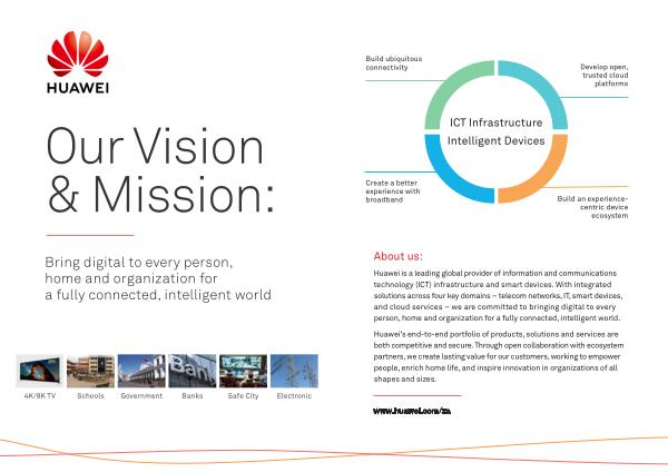 Huawei is a leading global provider of information and communications technology ( ICT ) infrastructure and smart devices . With integrated solutions across four key domains – telecom networks , IT , smart devices , and cloud services – we are committed to bringing digital to every person , home and organization for a fully connected , intelligent world .