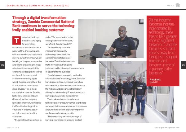 Through a digital transformation strategy , Zambia Commercial National Bank continues to serve the technologically enabled banking customer