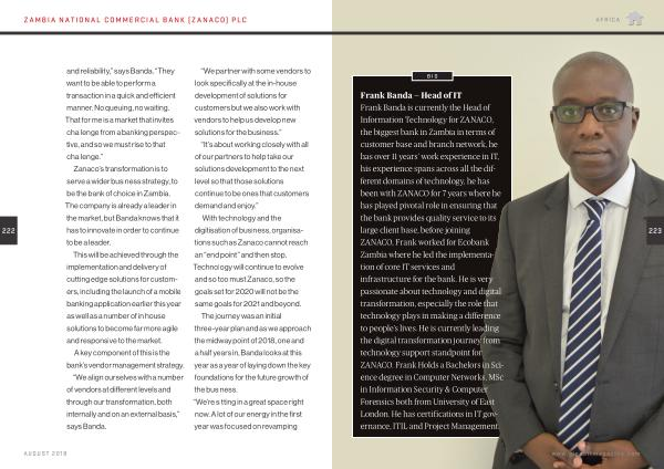 222 and reliability ,” says Banda . “ They want to be able to perform a transaction in a quick and efficient manner . No queuing , no waiting . That for me is a market that invites challenge from a banking perspective , and so we must rise to that challenge .”