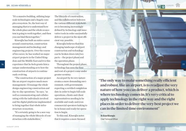 Köseoğlu has built an entire career around construction , construction managmeent and technology and engineering projects . Over the course of his career , he has worked on major airport projects in the United Kingdom and the Middle East and it is this experience that he feels grants him a unique understanding as to how the construction of airports is continuously evolving .