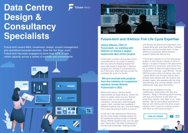 Future-tech covers M & A , investment , design , project management and operations focussed services . Over the last three years , Future-tech has been engaged on more than 3GW of data centre capacity across a variety of markets and environments .