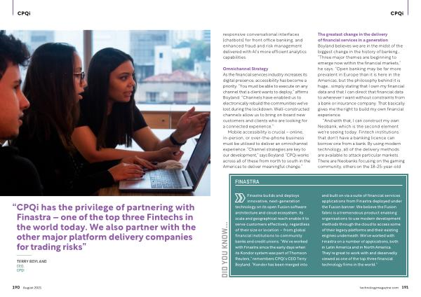 “ CPQi has the privilege of partnering with Finastra – one of the top three Fintechs in the world today . We also partner with the other major platform delivery companies for trading risks ”