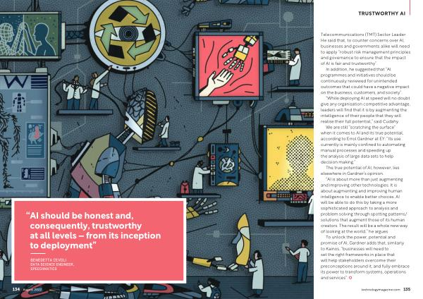 To unlock the power , potential and promise of AI , Gardner adds that , similarly to Kainos , “ businesses will need to set the right frameworks in place that will help stakeholders overcome their preconceptions around it , and fully embrace its power to transform systems , operations and services ”. technologymagazine . com 135