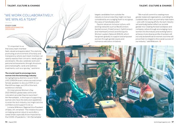 “ We must all commit to creating more gender-balanced organisations , overriding the outdated idea of tech as a primarily male realm – and , with increasing efforts , the tech industry will eventually better reflect our societal gender mix . Creating the best workplace and company culture through encouraging more women into the industry and working hard to achieve a more diverse profile of workers will not only be beneficial for women , but time will prove that it is integral to the overall success of our industry ,” said Wilkinson .