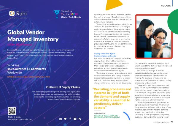 Supply chain and digital transformation at Google Iyer has a roadmap for Google ’ s networking supply chain . She and her team have devoted considerable effort to optimise their supply chain tools and systems to reengineer across the end to end value chain and enable FLOW and agility .
