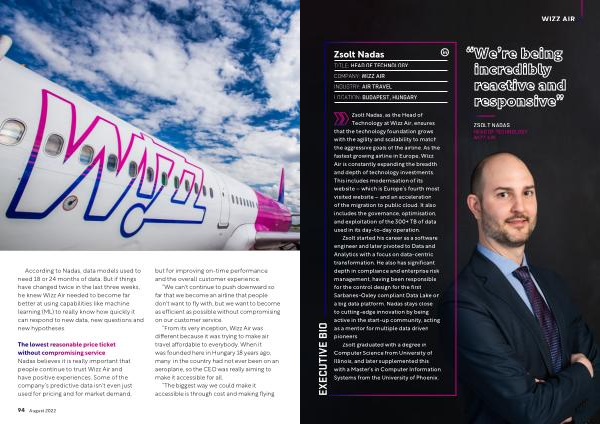 The lowest reasonable price ticket without compromising service Nadas believes it is really important that people continue to trust Wizz Air and have positive experiences . Some of the company ’ s predictive data isn ' t even just used for pricing and for market demand , but for improving on-time performance and the overall customer experience .
