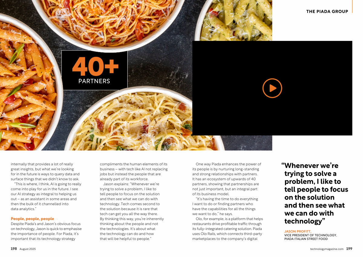 People, people, people Despite Piada’ s and Jason’ s obvious focus on technology, Jason is quick to emphasise the importance of people. For Piada, it’ s important that its technology strategy compliments the human elements of its business – with tech like AI not replacing jobs but instead the people that are already part of its workforce.