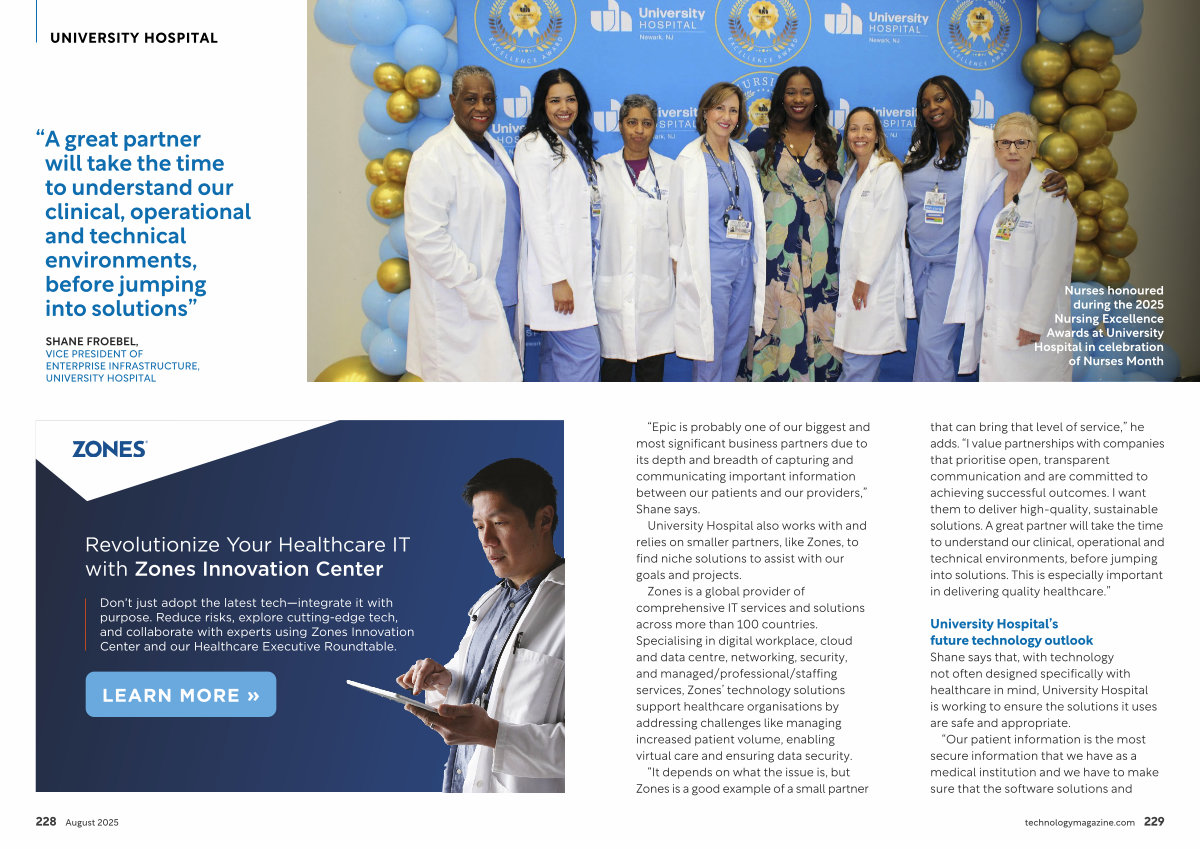 “ It depends on what the issue is, but Zones is a good example of a small partner that can bring that level of service,” he adds.“ I value partnerships with companies that prioritise open, transparent communication and are committed to achieving successful outcomes. I want them to deliver high-quality, sustainable solutions. A great partner will take the time to understand our clinical, operational and technical environments, before jumping into solutions. This is especially important in delivering quality healthcare.”