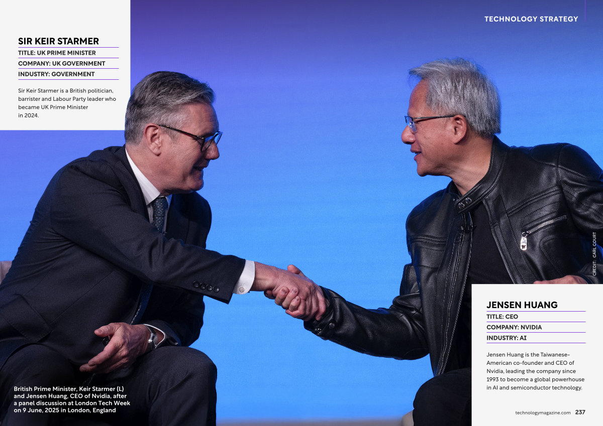 British Prime Minister, Keir Starmer( L) and Jensen Huang, CEO of Nvidia, after a panel discussion at London Tech Week on 9 June, 2025 in London, England