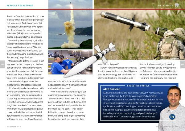 the value from this information in order to ensure that it is achieving what it set out to achieve . To this end , Aerojet Rocketdyne uses service level agreements , metrics , key performance indicators ( KPIs ) and critical performance indicators ( CPIs ) as a means of measuring the company against its strategy and architecture . “ What does ‘ done ’ look like in our world ? We are constantly figuring out how we get there and measuring ourselves across that journey ,” says Avakian .