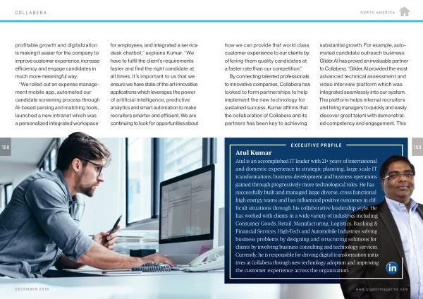 for employees , and integrated a service desk chatbot ,” explains Kumar . “ We have to fulfil the client ’ s requirements faster and find the right candidate at all times . It ’ s important to us that we ensure we have state of the art innovative applications which leverages the power of artificial intelligence , predictive analytics and smart automation to make recruiters smarter and efficient . We are continuing to look for opportunities about