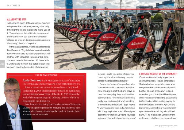 Within Santander too , it ’ s the data that makes the difference . “ Big data has been absolutely transformational to us as an organisation . We partner with Cloudera to run our big data platform here in Santander UK . I was able to understand through this collaboration that we don ’ t need to have silos of data going