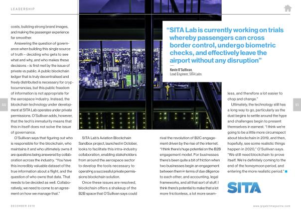 Answering the question of governance when building this single source of truth – deciding who gets to see what and why , and who makes these decisions – is first met by the issue of private vs public . A public blockchain ledger that is truly decentralised and freely distributed is necessary for cryptocurrencies , but this public freedom of information is not appropriate for the aerospace industry . Instead , the blockchain technology under development at SITA Lab operates under private permissions . O ’ Sullivan adds , however , that the tech ’ s immaturity means that this in itself does not solve the issue of governance .