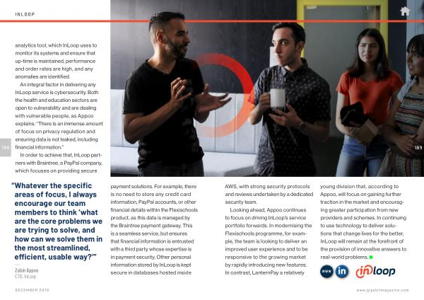 Looking ahead , Appoo continues to focus on driving InLoop ’ s service portfolio forwards . In modernising the Flexischools programme , for example , the team is looking to deliver an improved user experience and to be responsive to the growing market by rapidly introducing new features . In contrast , LanternPay a relatively young division that , according to Appoo , will focus on gaining further traction in the market and encouraging greater participation from new providers and schemes . In continuing to use technology to deliver solutions that change lives for the better , InLoop will remain at the forefront of the provision of innovative answers to real-world problems .