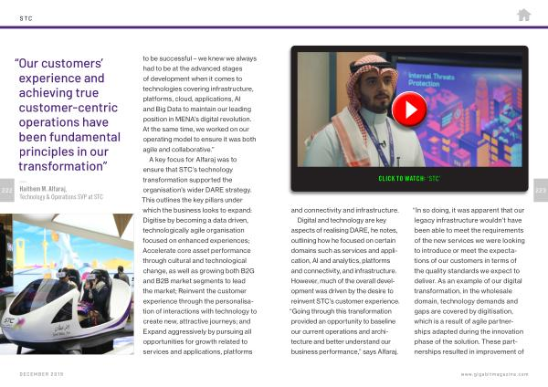 — Haithem M . Alfaraj , Technology & Operations SVP at STC to be successful – we knew we always had to be at the advanced stages of development when it comes to technologies covering infrastructure , platforms , cloud , applications , AI and Big Data to maintain our leading position in MENA ’ s digital revolution . At the same time , we worked on our operating model to ensure it was both agile and collaborative .”