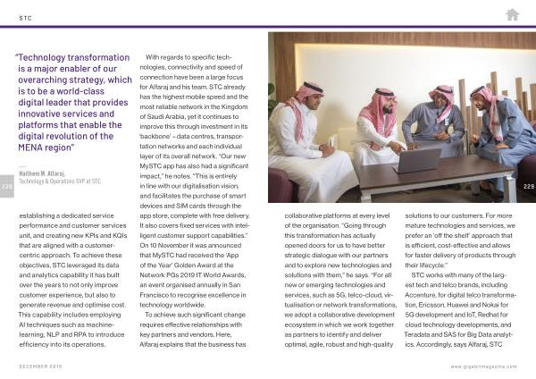 229 collaborative platforms at every level of the organisation . “ Going through this transformation has actually opened doors for us to have better strategic dialogue with our partners and to explore new technologies and solutions with them ,” he says . “ For all new or emerging technologies and services , such as 5G , telco-cloud , virtualisation or network transformations , we adopt a collaborative development ecosystem in which we work together as partners to identify and deliver optimal , agile , robust and high-quality solutions to our customers . For more mature technologies and services , we prefer an ‘ off the shelf ’ approach that is efficient , cost-effective and allows for faster delivery of products through their lifecycle .”