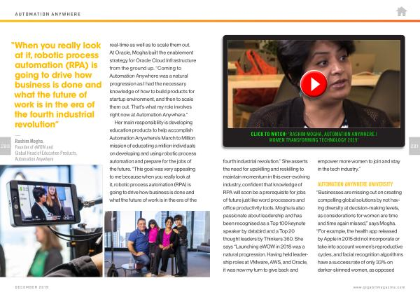 — Rashim Mogha , Founder of eWOW and Global Head of Education Products , Automation Anywhere real-time as well as to scale them out . At Oracle , Mogha built the enablement strategy for Oracle Cloud Infrastructure from the ground up . “ Coming to Automation Anywhere was a natural progression as I had the necessary knowledge of how to build products for startup environment , and then to scale them out . That ’ s what my role involves right now at Automation Anywhere .”