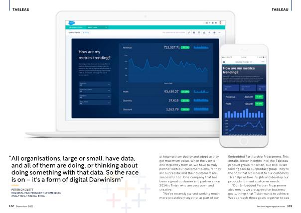 Embedded Partnership Programme . This entails closer insights into the Tableau product group for Tivian , but also Tivian feeding back to our product group . They ' re the ones that are closest to our customers . This helps us take insights and develop our products to meet customer needs .