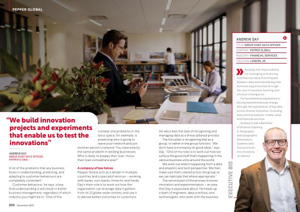 A company of two halves Pepper Global acts as a lender in multiple countries and a specialist servicer – working with banks , non-banks , fintechs , and funds . Day ’ s main role is to work out how the organisation can leverage data it gathers from its 13 globe-wide centres , and use it to deliver better outcomes to customers .