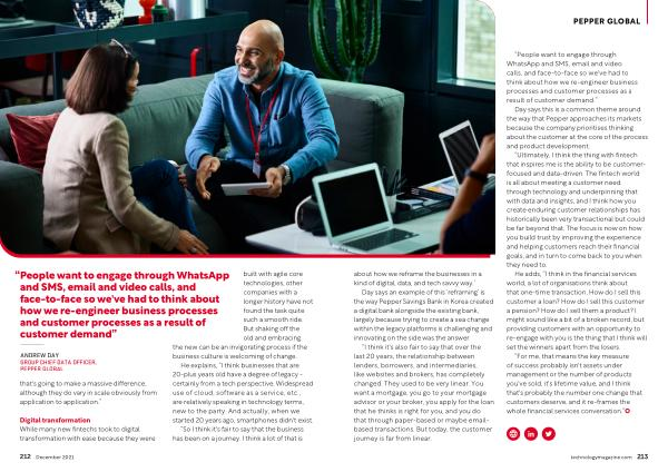 “ Ultimately , I think the thing with fintech that inspires me is the ability to be customerfocused and data-driven . The fintech world is all about meeting a customer need through technology and underpinning that with data and insights , and I think how you create enduring customer relationships has historically been very transactional but could be far beyond that . The focus is now on how you build trust by improving the experience and helping customers reach their financial goals , and in turn to come back to you when they need to .