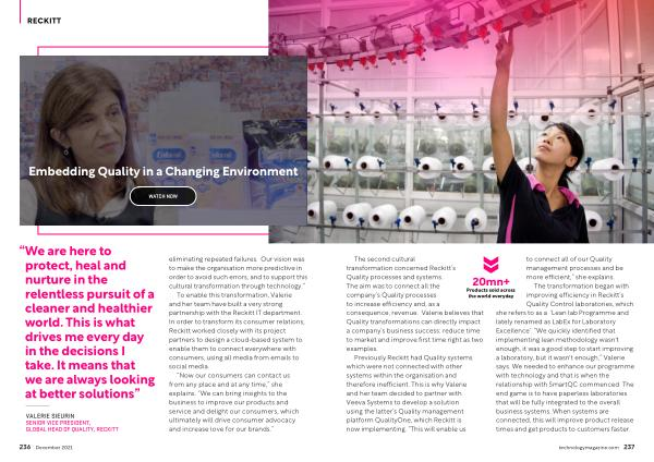VALERIE SIEURIN SENIOR VICE PRESIDENT , GLOBAL HEAD OF QUALITY , RECKITT eliminating repeated failures . Our vision was to make the organisation more predictive in order to avoid such errors , and to support this cultural transformation through technology .”