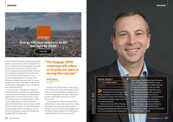 Hervé Suquet has taken the challenge to drive Orange Group Energy strategy since end of 2020 , under a dual goal to master cost evolution while reaching Orange target to be net zero carbon by 2040 .