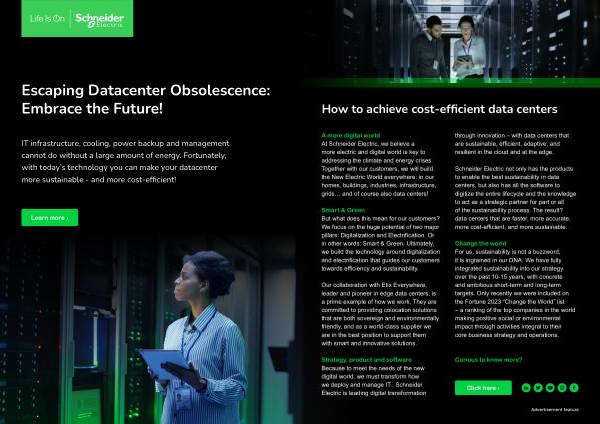 IT infrastructure , cooling , power backup and management cannot do without a large amount of energy . Fortunately , with today ’ s technology you can make your datacenter more sustainable - and more cost-efficient !