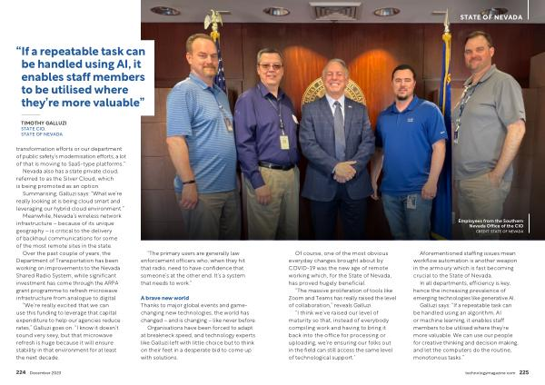Over the past couple of years , the Department of Transportation has been working on improvements to the Nevada Shared Radio System , while significant investment has come through the ARPA grant programme to refresh microwave infrastructure from analogue to digital . “ We ’ re really excited that we can use this funding to leverage that capital expenditure to help our agencies reduce rates ,” Galluzi goes on . “ I know it doesn ’ t sound very sexy , but that microwave refresh is huge because it will ensure stability in that environment for at least the next decade .