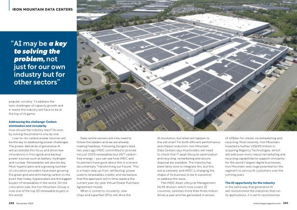 Low-to-no-carbon power sources will be the key to addressing power challenges . The power demands of generative AI will accelerate this focus and drive new innovations in microgrids and backup power sources such as battery , hydrogen and nuclear . Renewables will also be key . Most hyperscalers and a growing number of colocation providers have been growing the green grid and eliminating carbon to the point that today , hyperscalers are the biggest buyers of renewables in the world . On the colocation side , the Iron Mountain Group is now one of the top 20 renewable buyers in the world .