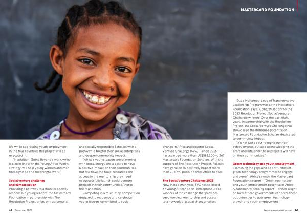 Duaa Mohamed , Lead of Transformative Leadership Programmes at the Mastercard Foundation , says : “ Congratulations to the 2023 Resolution Project Social Venture Challenge winners ! Over the past eight years , in partnership with the Resolution Project , the Social Venture Challenge has showcased the immense potential of Mastercard Foundation Scholars dedicated to community impact .