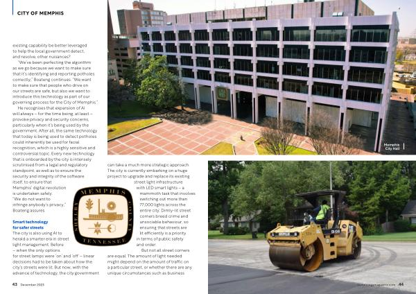He recognises that expansion of AI will always – for the time being , at least – provoke privacy and security concerns , particularly when it ’ s being used by the government . After all , the same technology that today is being used to detect potholes could inherently be used for facial recognition , which is a highly sensitive and controversial topic . Every new technology that is onboarded by the city is intensely scrutinised from a legal and regulatory standpoint , as well as to ensure the security and integrity of the software itself , to ensure that Memphis ’ digital revolution is undertaken safely . “ We do not want to infringe anybody ’ s privacy ,” Boateng assures .