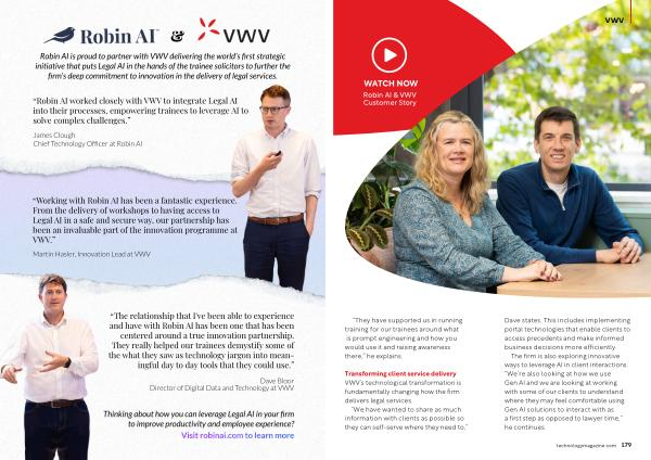 “ Robin AI worked closely with VWV to integrate Legal AI into their processes , empowering trainees to leverage AI to solve complex challenges .”