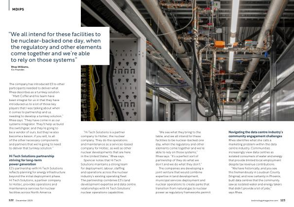 “ We have historically, and you see this tremendously in Loudoun County( Virginia), and now certainly in Phoenix, built data centres that the community saw as isolated water and energy takers that didn’ t provide a lot of jobs,” says Rhea. technologymagazine. com 123