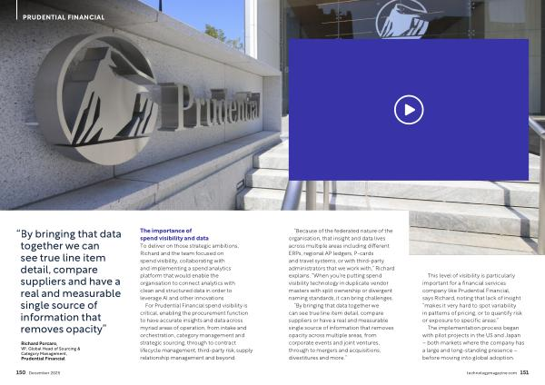 For Prudential Financial spend visibility is critical, enabling the procurement function to have accurate insights and data across myriad areas of operation, from intake and orchestration, category management and strategic sourcing, through to contract lifecycle management, third-party risk, supply relationship management and beyond.