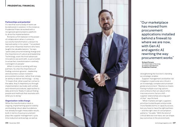 When it comes to working with key partners, he cites the importance of finding common ground – leadership and a business culture rooted in procurement acumen, rather than simply an ability to deliver technology – as key.“ It means that, when a partner comes to the table, they’ ll shepherd you through implementation tactically with unified and relevant procedures, approaches to data and more. Really it’ s about finding people and methods that resonate with what you’ re doing.”