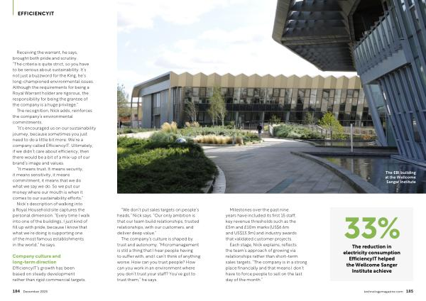 The reduction in electricity consumption EfficiencyIT helped the Wellcome Sanger Institute achieve