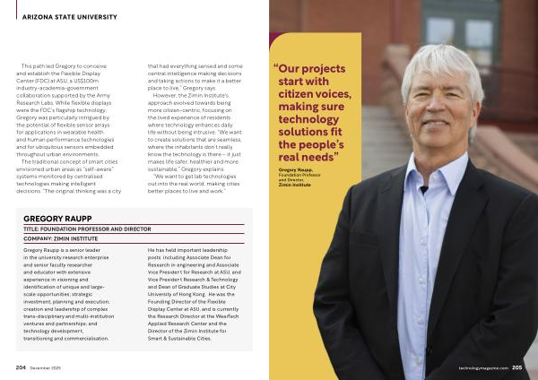 Gregory Raupp, Foundation Professor and Director, Zimin Institute technologymagazine. com 205