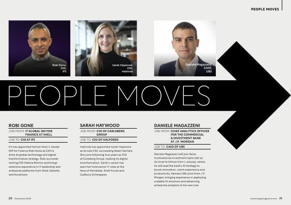 Daniele Magazzeni will join Swiss multinational investment bank UBS as its Chief AI Officer from 1 January, where he will lead the bank’ s AI strategy to boost innovation, client experience and productivity. Daniele UBS joins from J. P. Morgan, bringing experience in deploying scalable AI solutions and advancing enterprise analytics to his new role. technologymagazine. com 21
