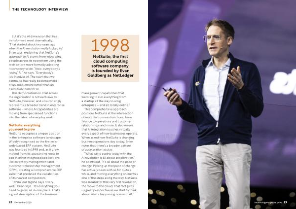 “ What we’ re seeing today with the AI revolution is all about acceleration,” he points out.“ It’ s all about the pace of change. Picking up that pace of change has actually been with us for quite a while, and moving everything online was one of the steps along the way. NetSuite was around for that very first revolution, the move to the cloud. That fact gives us great perspective as we start to think about what’ s happening now with AI.”