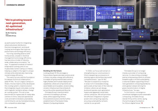 “ In 2026, our focus will remain on strengthening our core business in China, deepening our presence in existing regions and enhancing overall competitiveness,” says Mr Wu.“ We plan to expand our footprint in areas rich in renewable energy, particularly at key hubs of the national initiative, where we will design, build and operate next-generation hyperscale( gigawatt-level) data centre campuses. We will prioritise the efficient integration of green power and computing capacity, ensuring sustainability remains central to our growth.