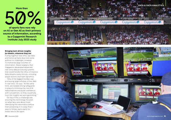 Bringing tech-driven insights to viewers, wherever they are Fusing together real-time, raw data and historical facts does not come without its challenges, however. To humanise large volumes of information, Steven explains that Capgemini developed advanced real-time data processing systems that could handle the influx of massive data streams every minute, including player actions and team dynamics.