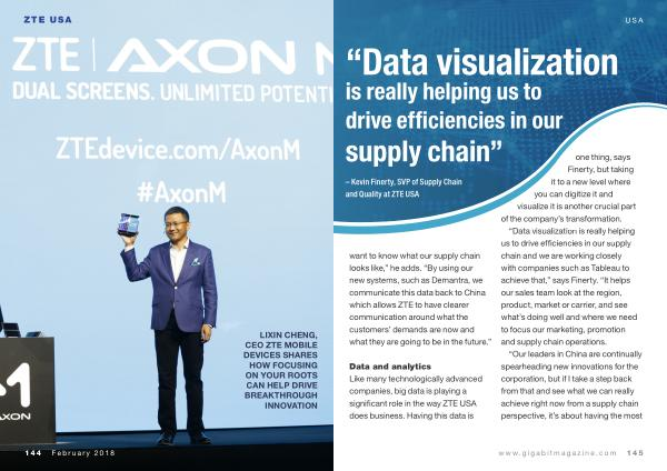 Data and analytics Like many technologically advanced companies , big data is playing a significant role in the way ZTE USA does business . Having this data is one thing , says Finerty , but taking it to a new level where you can digitize it and visualize it is another crucial part of the company ’ s transformation .