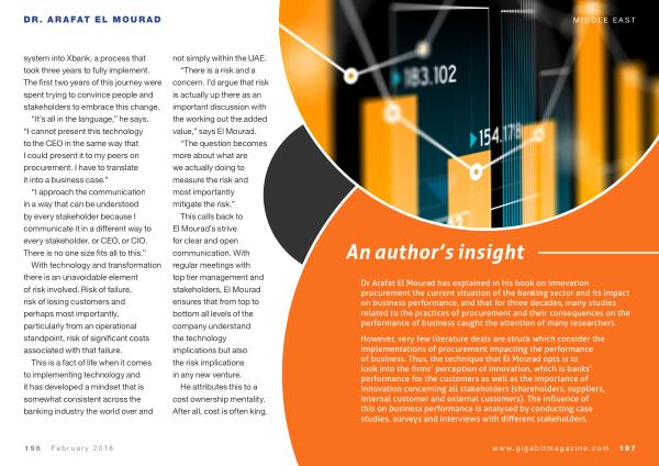 This is a fact of life when it comes to implementing technology and it has developed a mindset that is somewhat consistent across the banking industry the world over and not simply within the UAE . “ There is a risk and a concern . I ’ d argue that risk is actually up there as an important discussion with the working out the added value ,” says El Mourad .