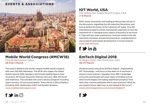500 + senior executives and leading professionals will join in the discussions regarding the 4th Industrial Revolution and how to define the future of the Industrial IoT today . Over 80 international experts will be sharing their expertise on how the industrial IoT is changing every aspect of business as we know it . They will also share experiences , forecast trends in the 4th industrial revolution , present best practices , evaluate best-inclass projects and explain development in recent projects . www . cebit . de / home EmTech Digital 2018