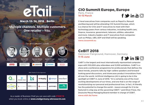 Hannover Fairground , Hannover , Germany 11-15 June CeBIT is the largest and most internationally represented computer expo with 100,000-plus attendees and 3,000 exhibitors . CeBIT is a show and a conference programme for professionals that defines the latest trends , presents talks by high-calibre speakers and forwardlooking panel discussions , and showcases product innovations from all over the world . Artificial intelligence ( AI ) is going to be in the spotlight at CEBIT in June of 2018 . “ AI is certainly one of the most exciting developments of our times , and one that is on the verge of revolutionizing our personal and professional lives . In fact , AI literally has the potential to change the world – reason enough for it to be featured in a big way at the upcoming CEBIT ,” said Oliver Frese , the Deutsche Messe Managing Board member in charge of CEBIT . www . cebit . de / home