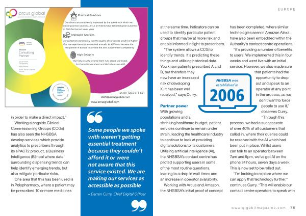 Partner power With growing populations and a shrinking healthcare budget , patient services continue to remain under strain , leading the healthcare industry to continue to look at providing digital solutions to its customers . Utilising artificial intelligence ( AI ), the NHSBSA ’ s contact centre has piloted supporting users in some of the most routine questions , leading to a drop in wait times and an increase in operator availability .